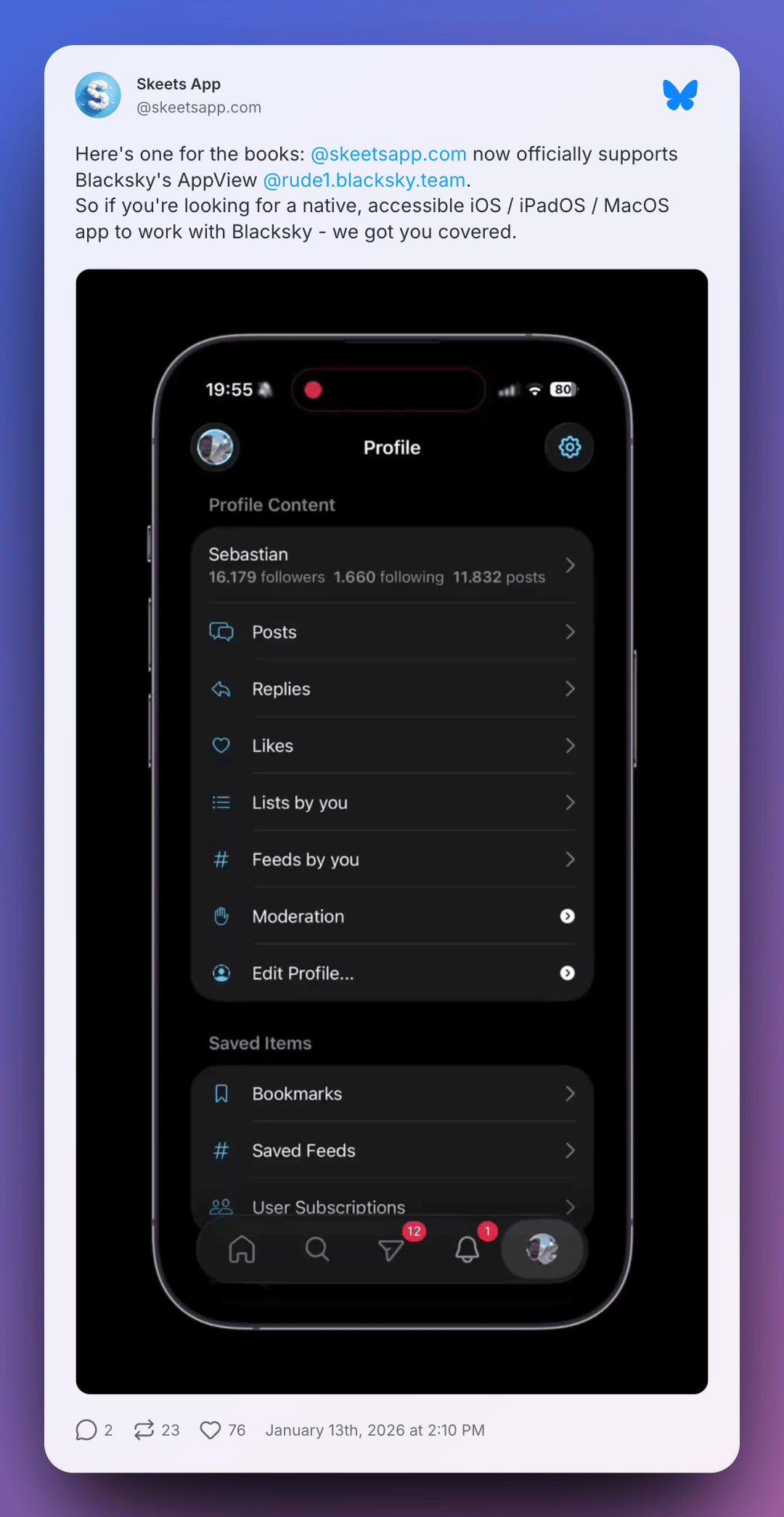 Bluesky Directory Newsletter Bluesky currently has over 43.5M users320K starter packs, 105K feeds & 300K lists EFF is logging off of X https://bsky.app/profile/eff.org/post/3mj3a52i36z2b Another significant move away from X, read the full thread:https://bsky.app/profile/eff.org/post/3mj3a52i36z2b v1.120 is live! Includes bug-fixes and easy access to search when on the web! Read more:https://bsky.app/profile/bsky.app/post/3mizb7z3cg22p Recently Added to the Directory Arabica: Track your coffee...